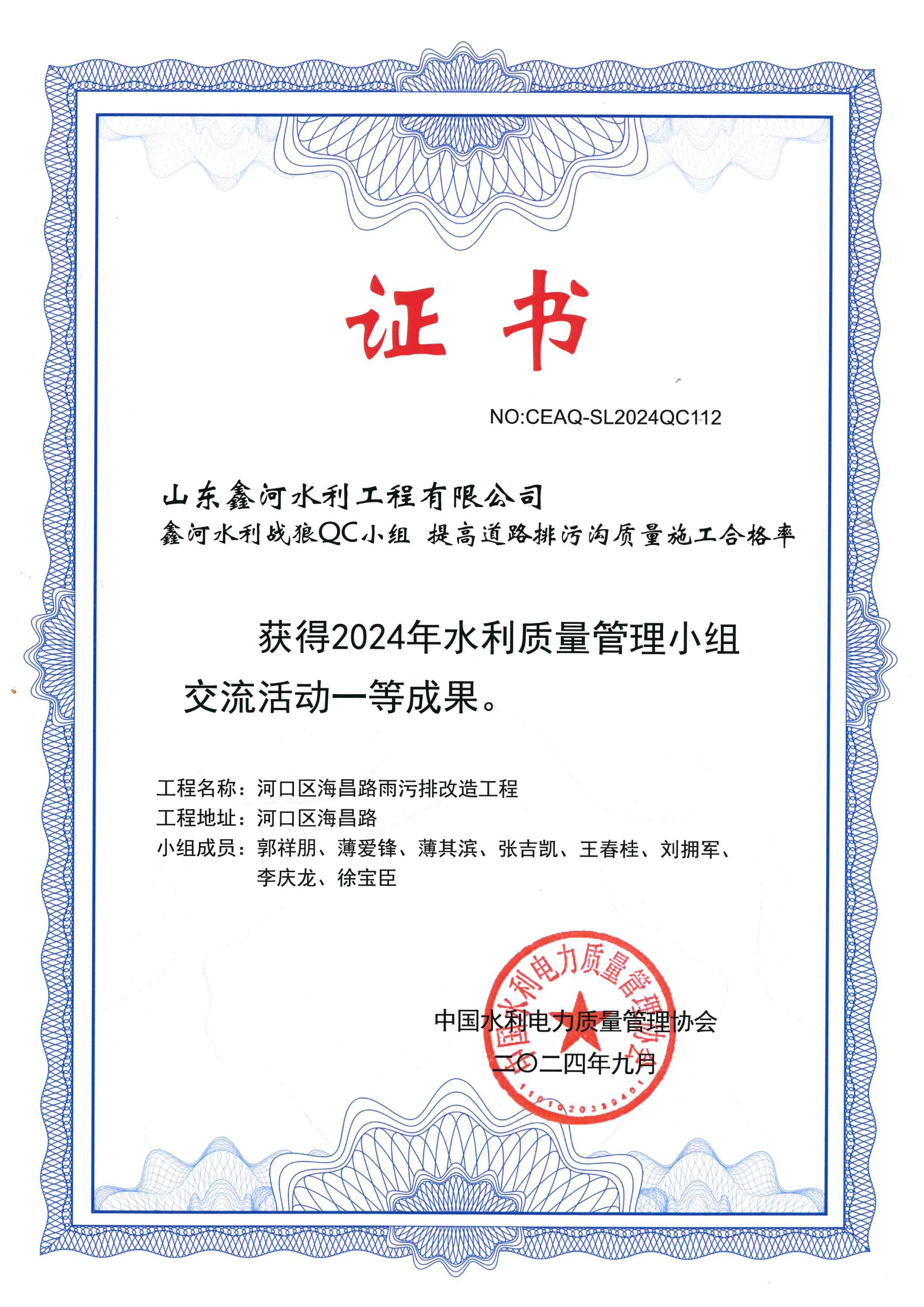 QC成果“提高道路排污溝質(zhì)量施工合格率”中國水利電力質(zhì)量管理協(xié)會(huì)一等成果(2024年9月)